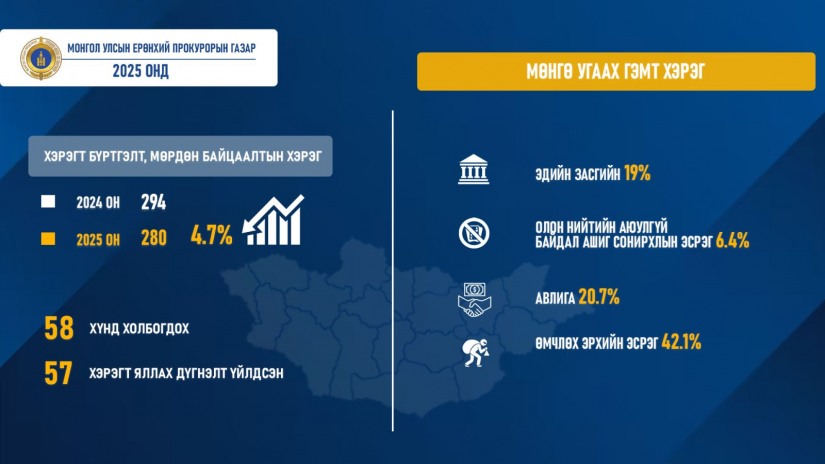 Эх сурвалж: Монгол Улсын Ерөнхий Прокурорын газрын Хэвлэл мэдээллийн алба