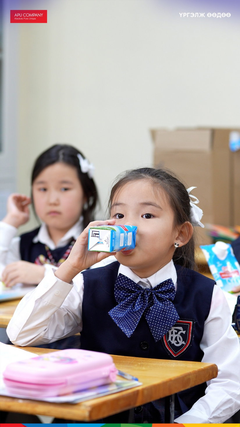 Энэ хөтөлбөрт АПУ Дэйри Монгол сүүний үйлдвэр нэгдэн, D амин дэмээр баяжуулсан “САЙН” D амин дэмтэй сүүгээр нийслэлийн 25 сургуулийн 38,000 гаруй сурагчийг хангаад байна.