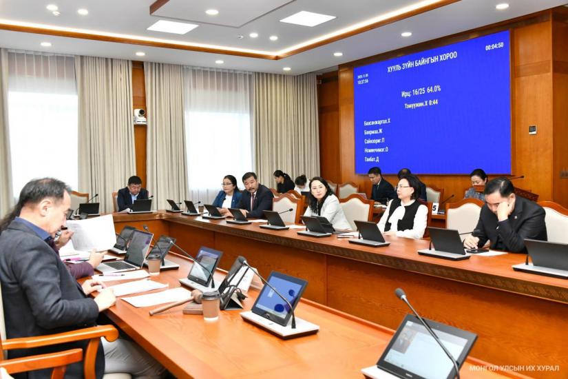 Улсын Их Хурлын Хууль зүйн байнгын хорооны өнөөдрийн (2025.11.05) хуралдаан 10 цаг 33 минутад гишүүдийн 64 хувийн ирцтэйгээр эхэлж, Үндсэн хуулийн цэцийн 2025 оны 08 дугаар дүгнэлтийн тухай хэлэлцэв.